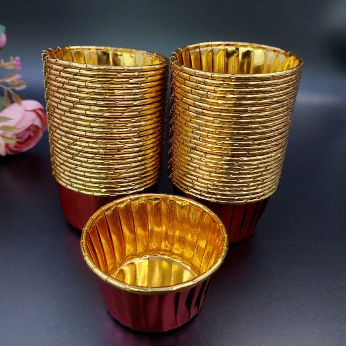 Форма бумажная МАФФИН ламинат "Красный/Золото" d50*h40 мм. (50 шт./упак.), 1 шт.
