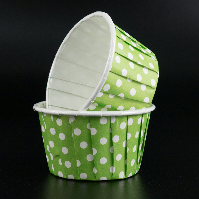 Форма бумажная МАФФИН ламинат "Светло-зеленый в белый горох/Белый" d50*h40 мм. (100 шт./упак.)