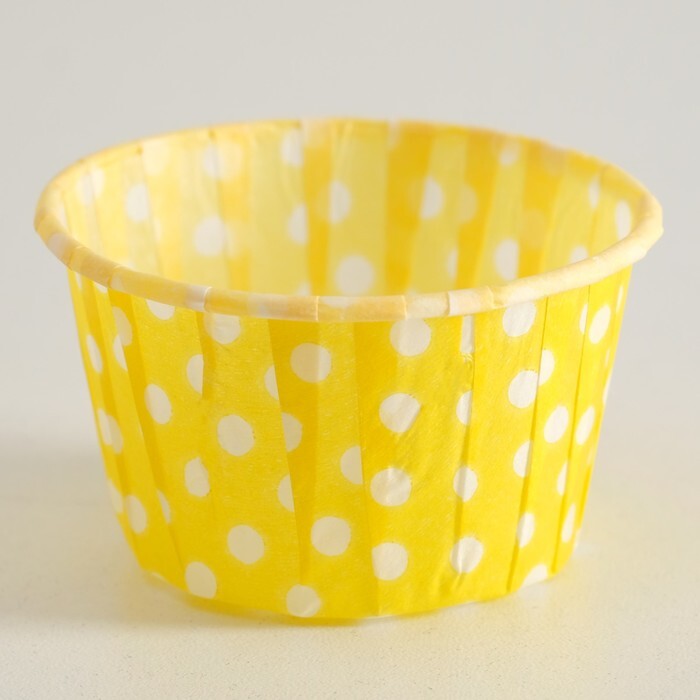 Форма бумажная МАФФИН "Желтая в белый горох " d50*h40 мм. (100 шт./упак.), 1 шт.