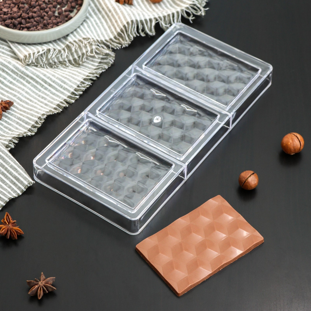 Форма для шоколада поликарбонатная "Плитка шоколада" 3 ячейки 275*175 мм.