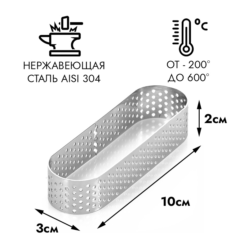 Форма металлическая перфорированная ОВАЛ h=20 мм., 35*100 мм.