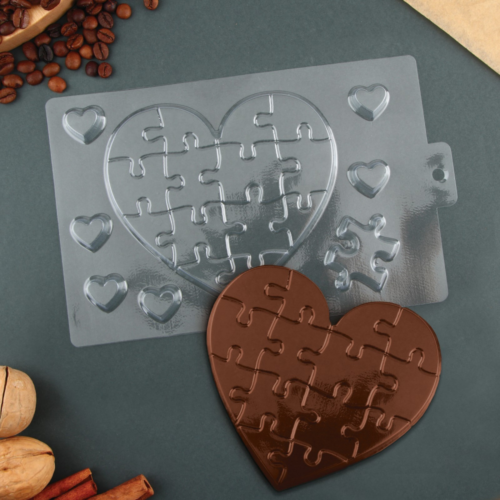 Форма пластиковая "Сердце пазл" 21*14 см.