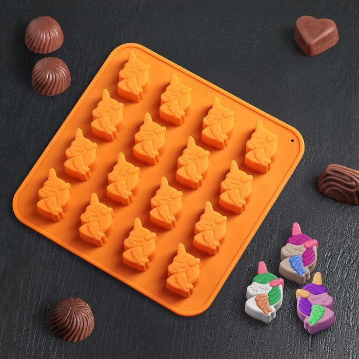 Форма силиконовая для шоколада "Единорога 16в1" 18*18 см.