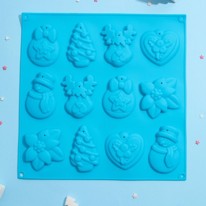 Форма силиконовая для шоколада "Елочные игрушки" 12 ячеек, 30*30 см.