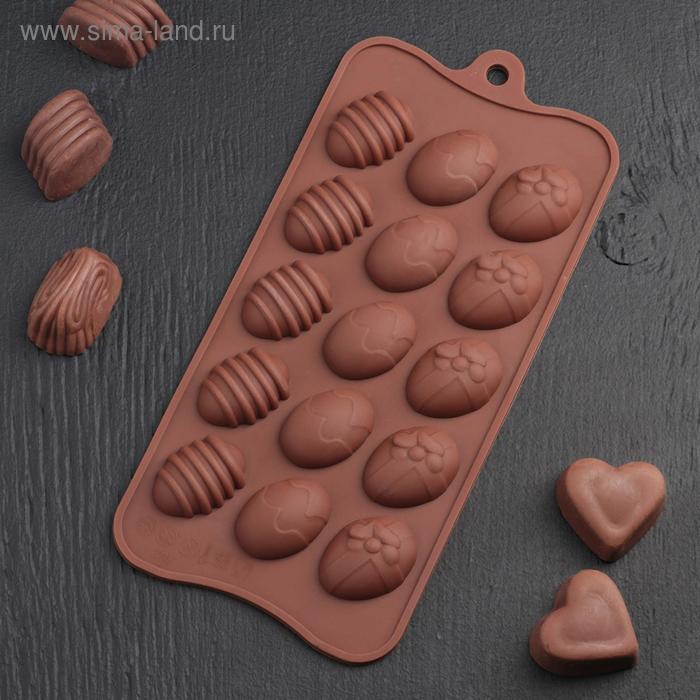 Форма силиконовая для шоколада "Пасхальные яйца 15в1" 22*10 см.