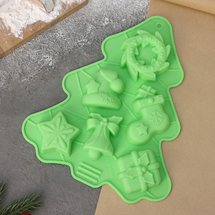 Форма силиконовая "Елка" 6 ячеек, 25*21 см. (зеленый)