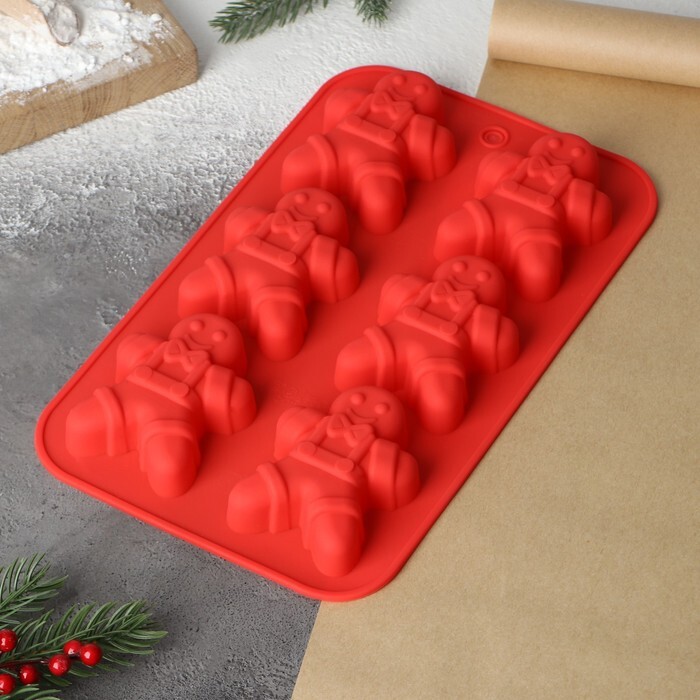Форма силиконовая "Новый год. Имбирный пряник" 6 ячеек, 28*27 см.