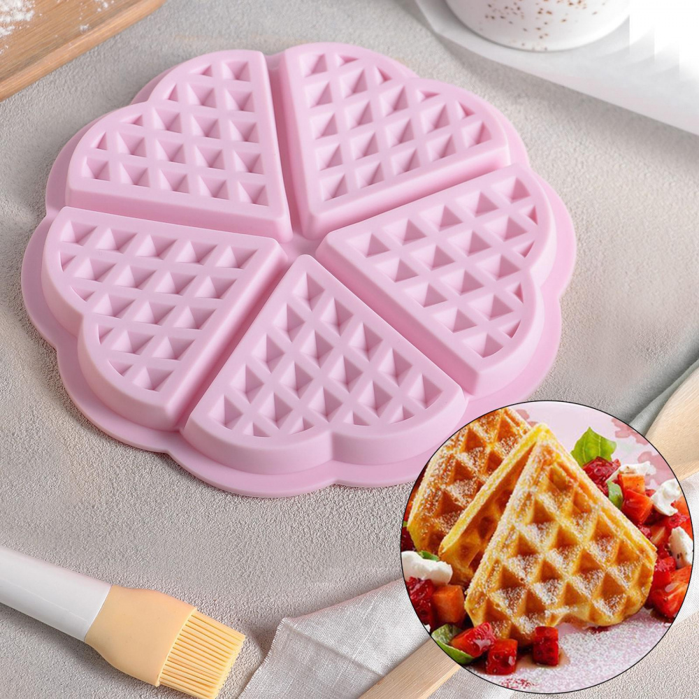 Форма силиконовая "Вафля. Сердце" d=18 см, 5 ячеек