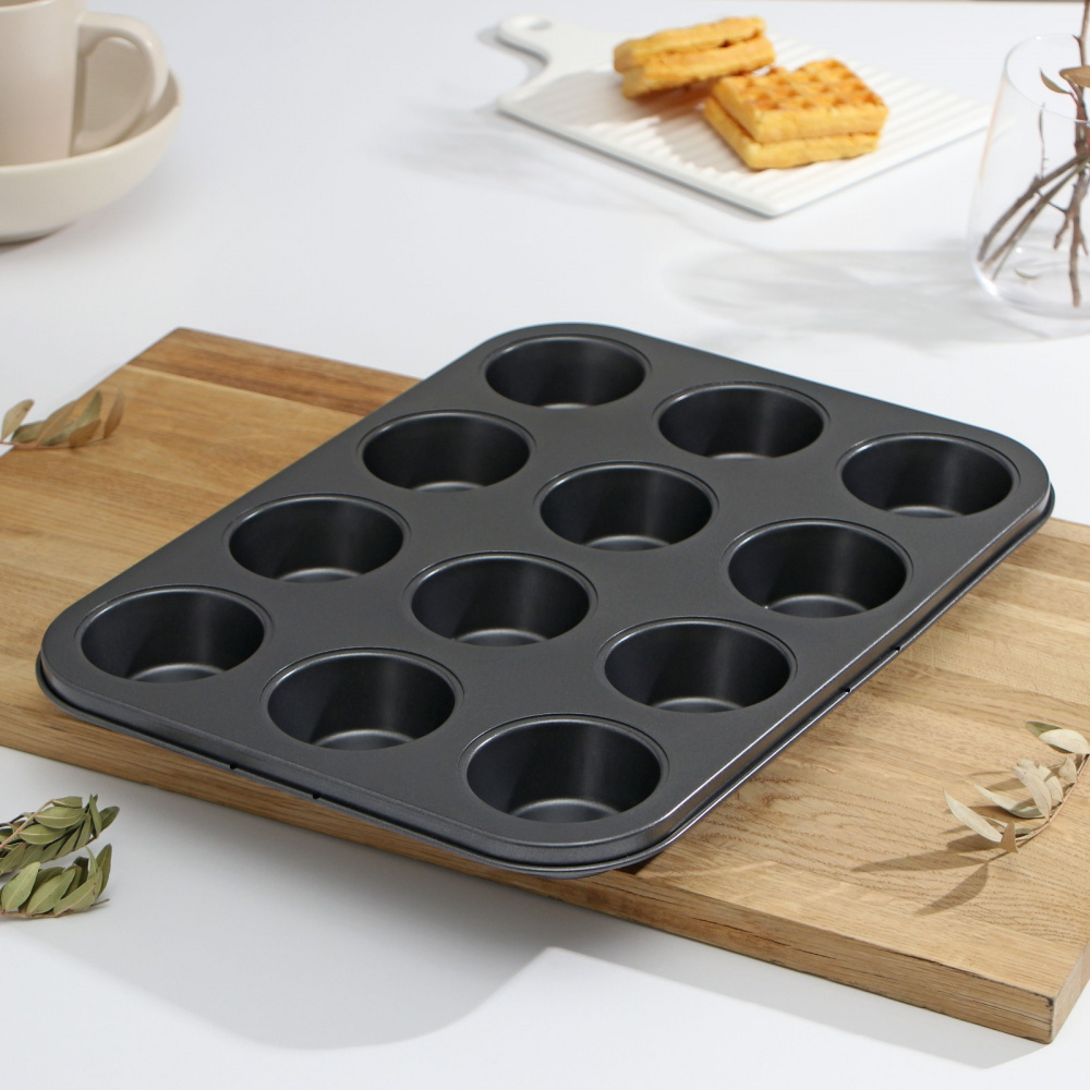 Форма тефлоновая для выпечки маффинов "Жаклин" 12 ячеек d=6,5 см., 35*26*3 см.