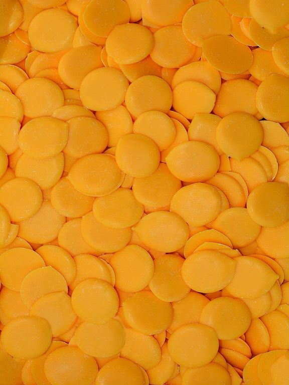 Состав: сахар, заменитель масла какао лауринового типа, сыворотка сухая молочная, эмульгатор, ароматизатор пищевой, краситель натуральный экстракт паприки (E160c), турмерик.