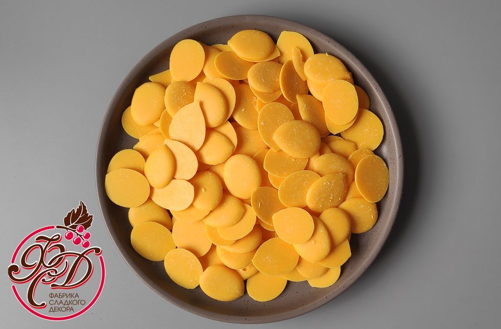 Состав: сахар, заменитель масла какао лауринового типа, сыворотка сухая молочная, эмульгатор, краситель турмерик, натуральный экстракт паприки (Е160с), ароматизатор пищевой.